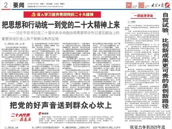 蓝图已经绘就,号角已经吹响。党的二十大胜利闭幕,山东出席党的二十大的代表们返回工作驻地后,纷纷走进基层、走进群众,以自己的亲身经历、切身感受,第一时间宣讲党的二十大精神,和干部群众一起学报告、谈体会、