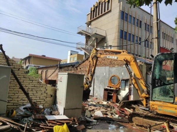 伴随着挖掘机铁壁挥舞的轰隆声,位于德城区新华街道德苑宾馆东侧的一处违建正在被拆除。8月21日,由属地街道牵头,联合德城公安分局、德城区城管局、德城区市场监管、交警等成立的联合执法队伍,对涉及5个街道的22处违章建筑依法拆除。