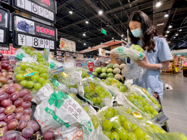 8月22日,记者走访德州城区部分大型商超、水果摊发现,阳光玫瑰葡萄的价格的确比往年要低,按大小、产地不同,不同超市阳光玫瑰的标价不同,零售价格从9.9元—25.8元/斤不等,虽然价格比刚引进时的百元一斤要低不少,但仍是葡萄中最高的。
