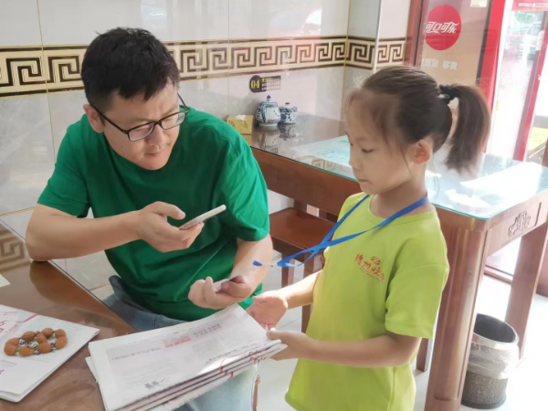 8月4日,今年7岁的盖一诺和妈妈走在卖报路上,一边聊天一边低头整理着手中的报纸。这是她第一年当小报童,虽然经验并不丰富,但她的态度却十分认真。盖一诺告诉记者,自己要成为像堂姐盖希浠一样优秀的小报童。