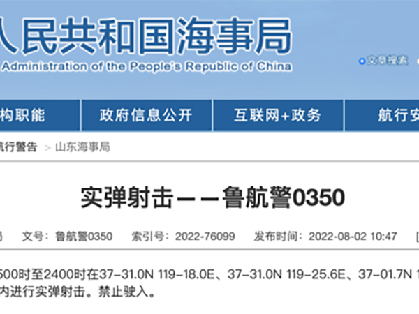 8月2日,山东海事局、烟台海事局先后发布三则航行警告,全文如下: