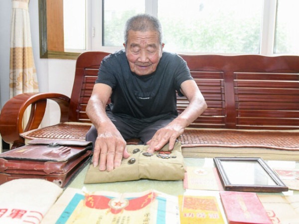 一枚枚军功章,承载着保家卫国的峥嵘岁月;一张张证书、奖状,见证了党和国家对老兵的亲切关怀。7月19日上午,98岁老兵朱兰亭将自己珍藏了70多年的军用品和“荣誉”无偿捐赠给德州市档案馆永久保存。
