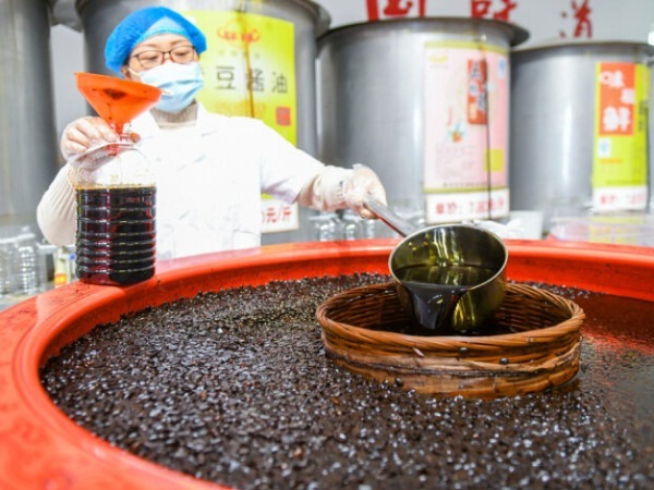 仲夏六月,天气逐渐炎热起来。充足的阳光和温度,让酱缸内的微生物悄无声息地发生着微妙的变化。在德州市环球酿造有限责任公司的酱油晾晒场内,整齐地排列着百余个酱缸,空气中充满了浓郁醇厚的酱香。