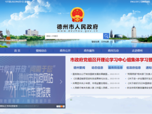 近日,德州市人民政府门户网站(www.dezhou.gov.cn)完成全面改版,正式上线运行。通过改版,德州市人民政府门户网站的功能性和服务性得到全面提升,将第一时间权威发布重大政策文件和政务信息,并面向公众提供办事服务和互动交流渠道,各项功能系统更实用、更便捷、更完善,更好服务于广大市民及企业。