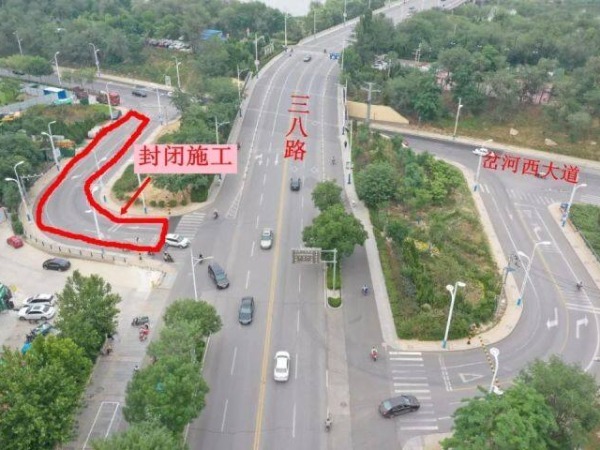 施工路段三八路与岔河西大道交叉口北匝道施工时间2022年5月11日——2022年6月5日交警提醒出行请提前观察路况行驶至施工区域周边时一定要减速慢行多观察路口变化注意行车安全