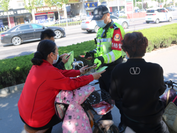 《山东省电动自行车管理办法》于5月1日起正式施行,《办法》中对于电动自行车安全文明驾驶行为进行明确规定。当天,市公安局交警支队直属一大队在辖区4个重点路口组织开展专项行动,宣传法律法规,劝导市民依法依规安全文明出行。