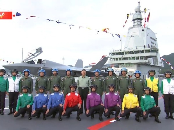 我国第一艘电磁弹射型航空母舰福建舰入列授旗仪式5日在海南三亚某军港举行。中共中央总书记、国家主席、中央军委主席习近平出席入列授旗仪式并登舰视察。