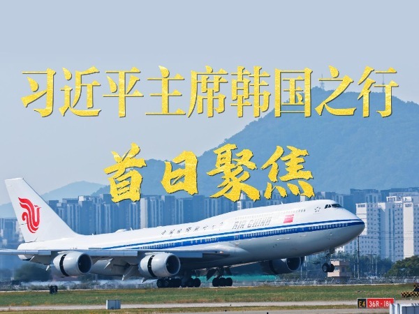 10月30日,中国元首外交开启韩国之行,全球瞩目。当天上午,习近平主席乘专机抵达韩国釜山,韩国外长赵显等高级官员在机场热情迎接,礼兵分列红地毯两侧致敬,军乐团演奏行进乐,机场鸣放21响礼炮。在釜山,习