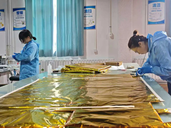 近日,在德州高新区(禹城)的山东微焓科技有限公司生产车间内,技术人员正精心处理一种金色的多层隔热材料。公司工程技术部部长李文忠将其比作航天器的“超级羽绒服”,这件“黄袍”能抵御太空中正负200摄氏度的