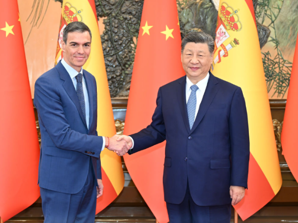 4月14日上午,国家主席习近平在北京人民大会堂会见来华进行正式访问的西班牙首相桑切斯。 4月14日上午,国家主席习近平在北京人民大会堂会见来华进行正式访问的西班牙首相桑切斯。 习近平指出,尽管国际
