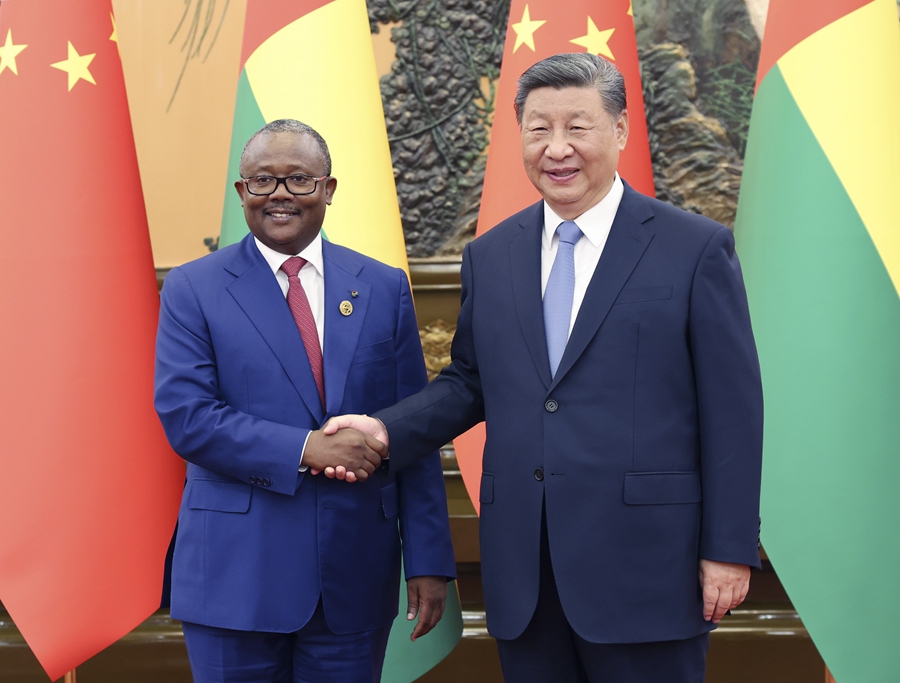 9月5日晚,国家主席习近平在北京人民大会堂会见来华出席中非合作论坛北京峰会的几内亚比绍总统恩巴洛。新华社记者姚大伟摄 新华社北京9月5日电(记者朱超、董雪)9月5日晚,国家主席习近平在北京人民大会堂