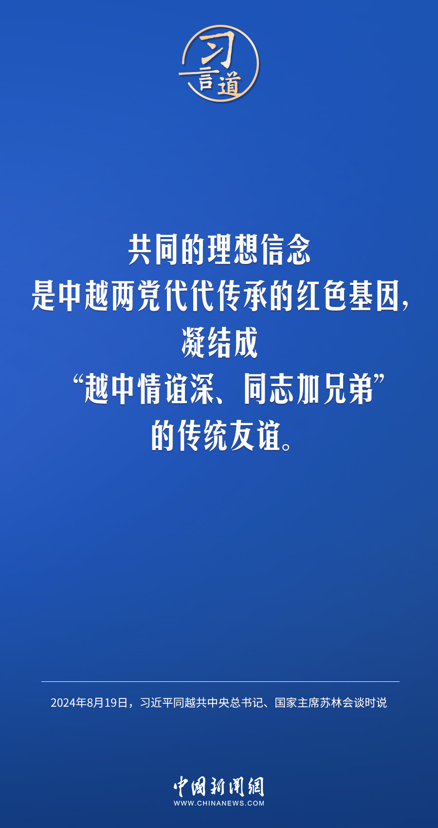 8月19日,中共中央总书记、国家主席习近平在北京人民大会堂同来华进行国事访问的越共中央总书记、国家主席苏林举行会谈。习近平指出——