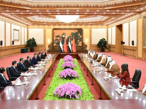 4月14日上午,国家主席习近平在北京人民大会堂会见来华访问的阿联酋阿布扎比王储哈立德。习近平指出,阿联酋是中国的全面战略伙伴,中方始终高度重视发展中阿关系。当前,世界之变、时代之变、历史之变正以前所未