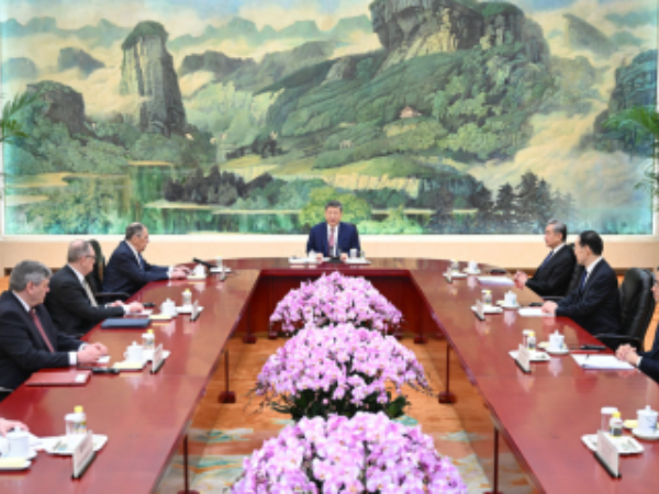 4月15日上午,国家主席习近平在北京人民大会堂会见俄罗斯外长拉夫罗夫。习近平指出,今年是中俄战略协作伙伴关系建立30周年,也是《中俄睦邻友好合作条约》签署25周年,两国全面战略协作伙伴关系保持高水平发