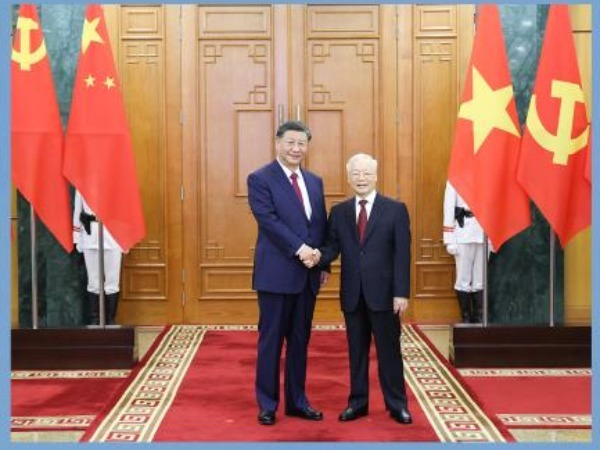 山水相连命运与共越中情谊深同志加兄弟习近平总书记、国家主席第三次踏上这片土地最热情的接待最隆重的礼遇构建具有战略意义的中越命运共同体中越关系迈上新高度携手同行现代化之路务实合作结出新成果根基在人民未来