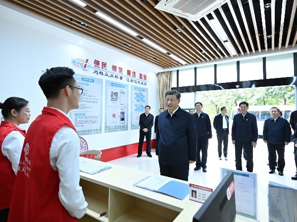 12月14日,正在广西考察的习近平总书记来到南宁市良庆区蟠龙社区党群服务中心,听取现场工作人员关于开展主题教育、促进便民惠企、举办民族特色活动等情况介绍,对他们坚持党建引领聚合力、服务为本促发展的做法
