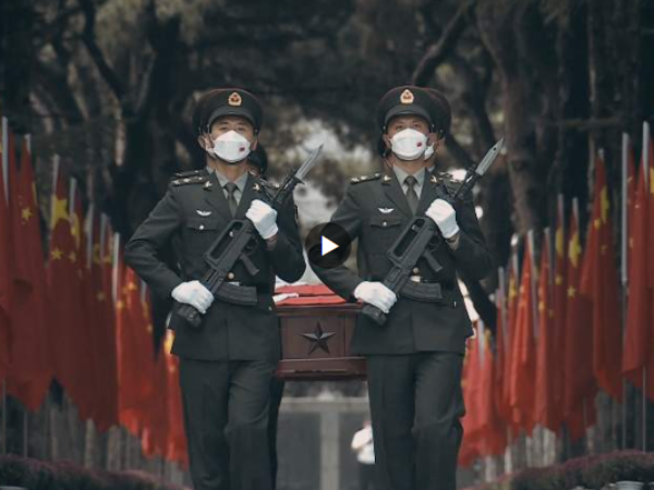 “祖国接你们回家!”国旗为盖军机为驾礼兵为伴,今天,25名在韩志愿军烈士回家。交接仪式上,中国驻韩国大使为烈士棺椁小心覆盖上五星红旗。现场所有人向烈士遗骸鞠躬致敬,礼兵手捧烈士棺椁登上运-20专机,准